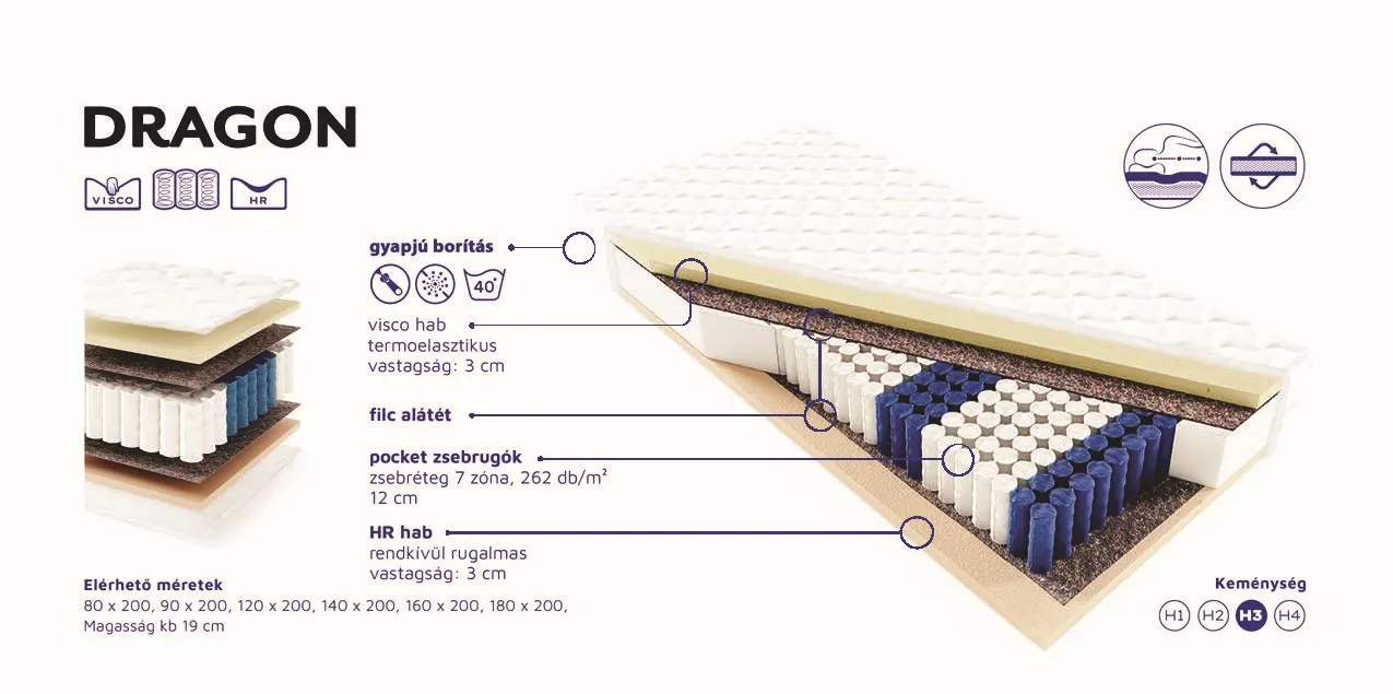 DRAGON matrac tulajdonságai: